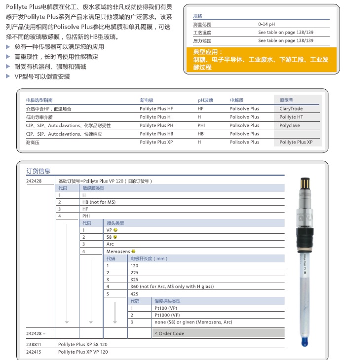 Polilyte Plus電解質(zhì)在化工、廢水領(lǐng)域的非凡成就使得我們有靈感開(kāi)發(fā)Polilyte Plus系列產(chǎn)品來(lái)滿足其他領(lǐng)域的廣泛需求。 該系列產(chǎn)品使用相同的Polisolve Plus參比電解質(zhì)和單孔隔膜,,可選擇不同的玻璃敏感膜,,包括新的HB型玻璃。