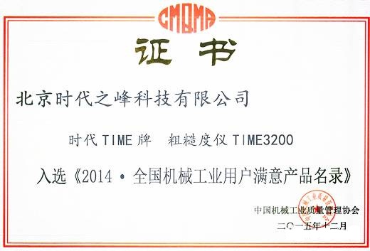 祝賀:時(shí)代TIME牌 粗糙度儀TIME3200入選《2014▪全國機(jī)械工業(yè)用戶滿意產(chǎn)品名錄》