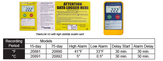 FlashLink VU 果蔬記錄儀 是專(zhuān)門(mén)設(shè)計(jì)用來(lái)記錄農(nóng)產(chǎn)品的貯存和運(yùn)輸溫度。記錄儀具有高/低報(bào)警設(shè)置預(yù)編程(41°F/33°F)?蛻暨\(yùn)輸農(nóng)產(chǎn)品可以使用這款一次性數(shù)據(jù)記錄儀。 它有一個(gè)大而易閱讀的液晶顯示屏,能夠提供即時(shí)的溫度信息和統(tǒng)計(jì)數(shù)據(jù),鈕扣式溫度記錄儀,包括行程中的溫度上下極限、溫度超標(biāo)的累積時(shí)間、最高溫度、最低溫度和平均溫度。即使是使用者不啟動(dòng)數(shù)據(jù)記錄儀,爐內(nèi)壁溫度記錄儀,其專(zhuān)利的影子記錄功能也能保證歷史溫度數(shù)據(jù)的獲取。