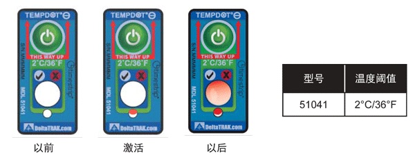 TempDot™ Minus標(biāo)簽需存儲在室溫下,并且必須在反應(yīng)溫度 以上被激活。激活是通過用手指推壓,標(biāo)簽 底部的小窗口變?yōu)榧t色或部分變紅色以指示激活,但激活后并不需要保持紅色。當(dāng)使用了上述反應(yīng)溫度 標(biāo)簽的產(chǎn)品暴露于閾值以下的溫度,白色的大窗口變?yōu)榧t色或部分紅色,,在反應(yīng)溫度 以上將溫度標(biāo)簽用 于產(chǎn)品。如果一個產(chǎn)品暴露于閾值以下的溫度,白色的大窗口變紅色或部分紅色,,TempDot™ Minus標(biāo)簽 提供即時的視覺指示。為達(dá)到最佳效果,標(biāo)簽應(yīng)保持垂直位置,其反應(yīng)期間,,紅色箭頭須指向上方。