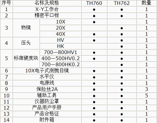 顯微硬度計(jì)基本型譜表: