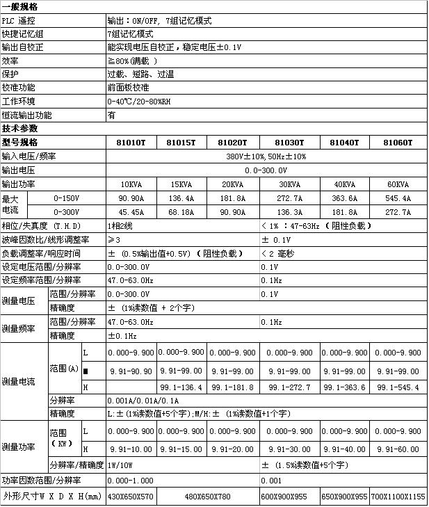 1.全范圍可調(diào)輸出電壓及頻率設(shè)定范圍(0-300V,,47-63Hz),,輸出電壓的穩(wěn)定率可達(dá)0.5%;