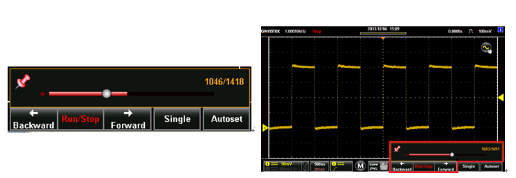 GDS-300/GDS-200系列示波器內(nèi)建30,000筆波形記錄以及回放功能。工程師能夠使用此功能進(jìn)行長(zhǎng)時(shí)間的電路監(jiān)控,當(dāng)30,000筆波形量測(cè)完成時(shí),還能重復(fù)播放過去的記錄,當(dāng)電路中若發(fā)生間歇性的異常波時(shí),便可利用回放功能找到問題發(fā)生之所在,提供使用者一個(gè)強(qiáng)大的搜尋以及除錯(cuò)利器。