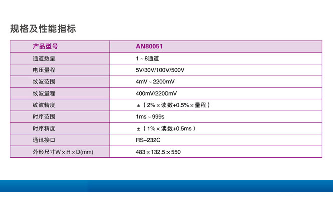 AN80051多通道時序紋波測量儀具有直流電壓紋波和時序測試功能,,主要應用于各種家電電源、適配器和各種開關類電源的時序測試。