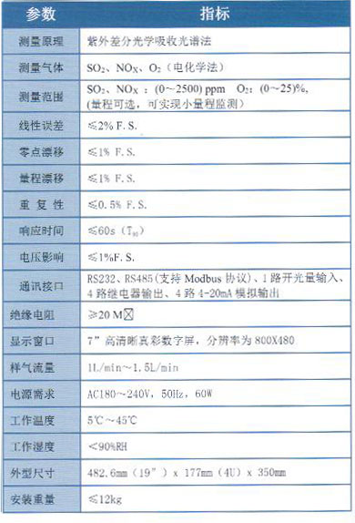 主要功能 1. 監(jiān)測項目 SO2濃度、NO濃度、煙氣流速、煙氣溫度、煙氣壓力、煙氣含氧量等多項參數(shù)。 2. 顯示功能 中文顯示,可以顯示參數(shù)列表、實時數(shù)據(jù)、歷史數(shù)據(jù)、報表畫面等。 3. 打印功能 本系統(tǒng)的軟件生成的報表格式符合國家相關(guān)標(biāo)準(zhǔn),便于打印。 4. 報警功能 本系統(tǒng)報警功能分為超限報警與事件報警。 5. 數(shù)據(jù)傳輸 本系統(tǒng)接口支持多種協(xié)議,包括RS232、RS485、4-20mA電流信號等多種數(shù)據(jù)傳輸方式。 6. 可擴(kuò)展性 擴(kuò)展性能強(qiáng)大,便攜式在線煙氣分析儀,可以根據(jù)證詞法規(guī)等隨時更改或添加新的內(nèi)容與功能。